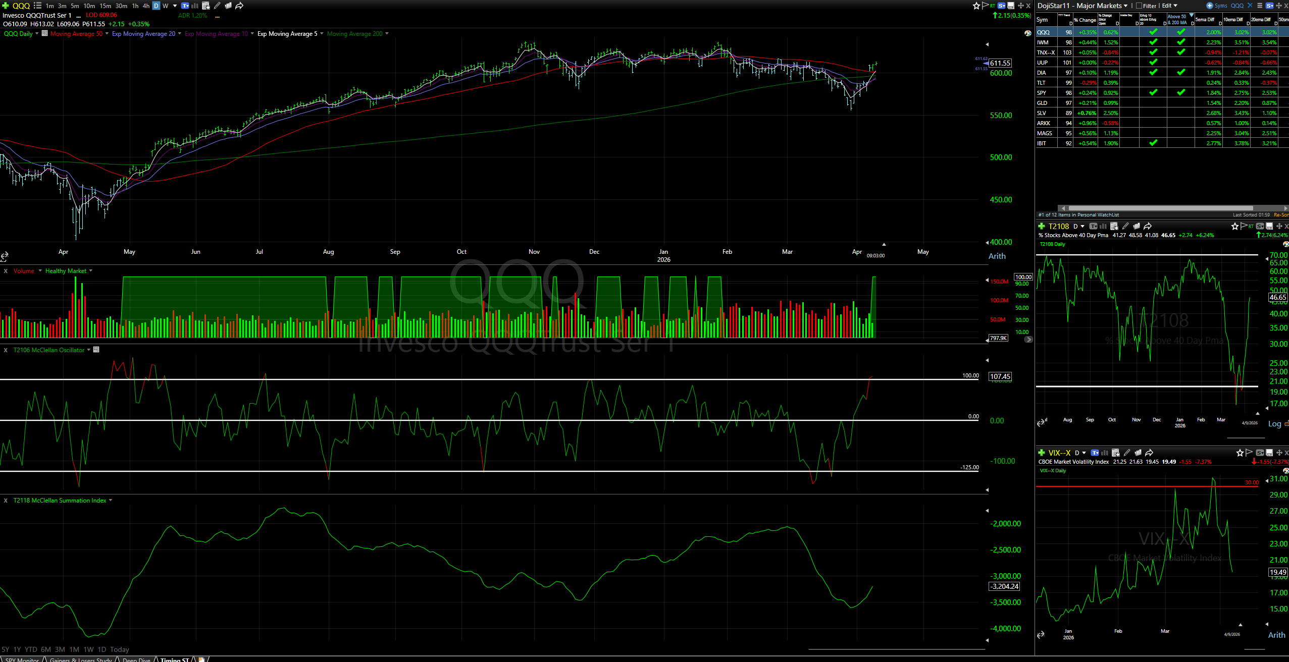 Commentary: Bullish indicators are flashing green for me in the medium term. The short term is showing rest is needed after such a bounce. For me this means I’ll take any strong catalyst trade at regular size but I’m still not seeing those opportunities yet. I am confident we are going to see some fantastic catalysts in earnings season kicking off next week and that is my focus.