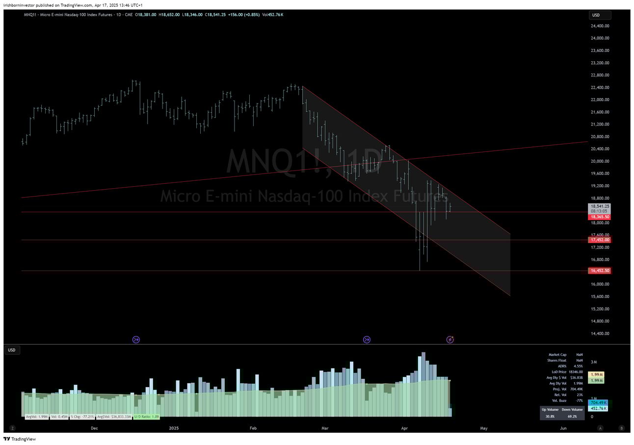 I’m still relatively short term bullish here. I think yesterday was a normal shakeout and we recovered in an orderly manner. This market is news driven and Tweet driven so just watch the VIX, if that is dropping then longs are worth considering. Knowing the playbook I think the administration will try to get something bullish out today before we close for the long weekend. It remains obvious that the market will literally rally on anything positive short term. Longer term I don’t think we will be back at all time highs anytime soon!