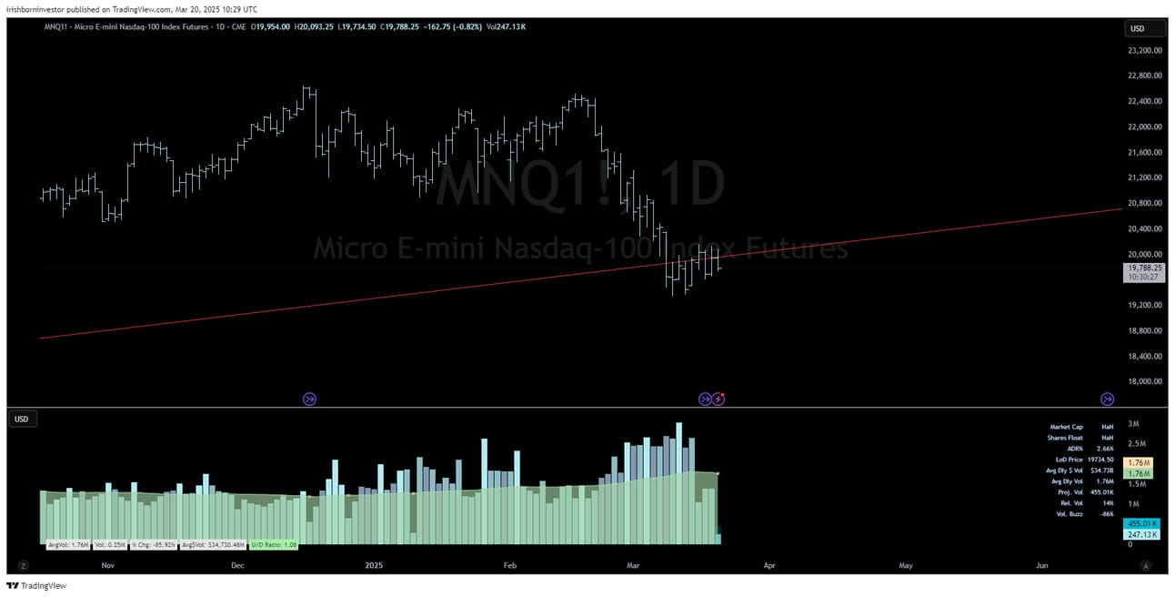 Honorable Mention to: Pretty much nothing…. FIVE reacted positively but it’s coming right into the top of a channel and the guide was bad and analysts are cutting expectations. I feel like it’s a fade, DBI - again nothing great, high short interest maybe that works, ACN - reasonably inline results but miss on guide. Potential for a bounce maybe at key level but I’m not too confident. PDD - may work as a short, but not something I’m concentrating on…
