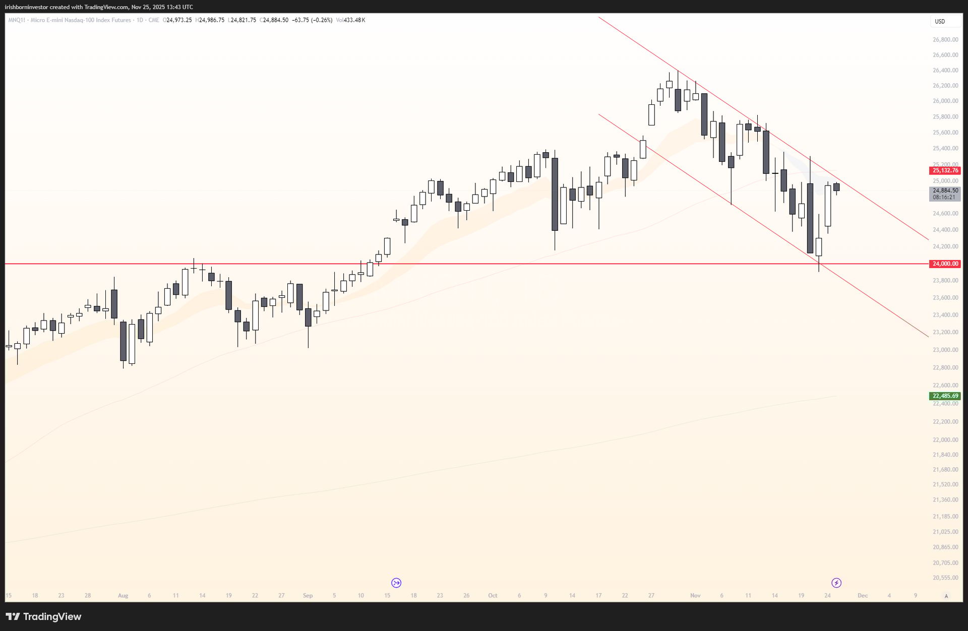 I didn’t plan to publish this week but I think there are three nice candidates today. The negative for me is where the market is. We’re at the top of the trendline. NVDA weakness is also concerning. The AI narrative pushing toward GOOG seems simply just that. A narrative. GOOG is gapping up for a second day in a row and that’s not sustainable for $4t company.