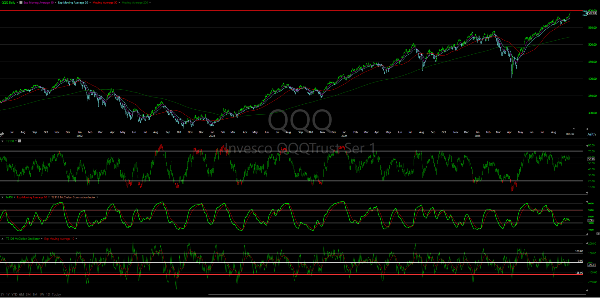 I am quite wary of the FOMC meeting tomorrow. Not that I think something unexpected will happen but we are running hard into it. It would be a perfect sell the news event. That being said I am not looking to trade that event. I am however reducing my exposure on strength. Yesterday I trimmed many positions back and today I will likely do the same. Bringing myself down from heavy margin and cautious on new positions this week. I have had a $600 target on QQQ for months now (to keep myself bullish) and we’re getting very close to that. Certainly not a call for the top but probabilities are skewed.