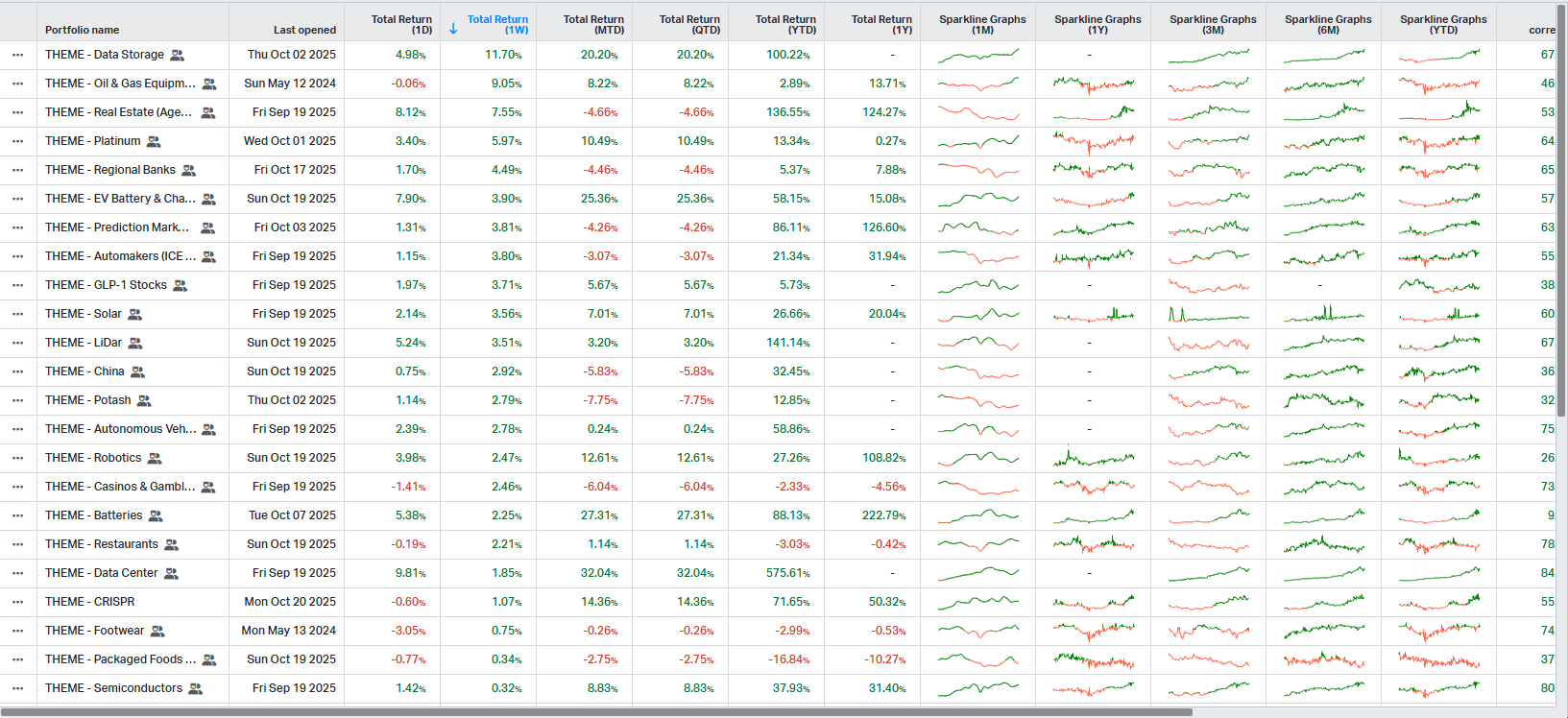 Lots of the obvious Themes still strong this week but I’m still noting Oil & Gas as improving, Real Estate, Regional Banks and China. More defensive and slower moving areas developing on weekly and daily charts. This could be a long process and I’m just noting improving strength. The speculative themes are still hot right now.