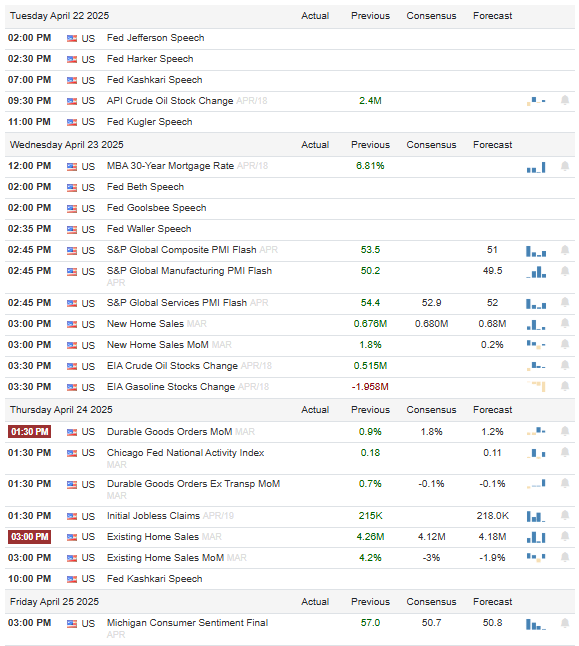 We also have plenty of FED speakers this week (image below) and IMF Meetings in Washington so expect plenty of Tariff talk and headline risk throughout the week. No doubt there will be plenty of news bombs and we just have to live with them. As always I will be keeping an eye on the VIX. If it’s not advancing I’ll just be concentrating on the stocks.