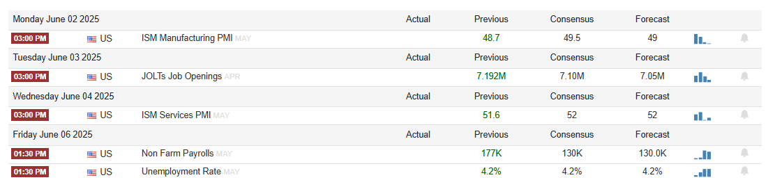 Regular week incoming in the markets. We have a few Macro events ISM Monday at 10am EST, Powell will also speak at 1pm Eastern on Monday. There are a couple of nice earnings coming up but nothing too crazy. CRWD and AVGO are the most high profile but LULU, RBRK, and MDB are interesting to me. Full highlights below. From the weekend news I’m quite interested in Drone Stocks this week after the Ukraine Operation in Russia. I think they may be in theme. Full Watchlist here.