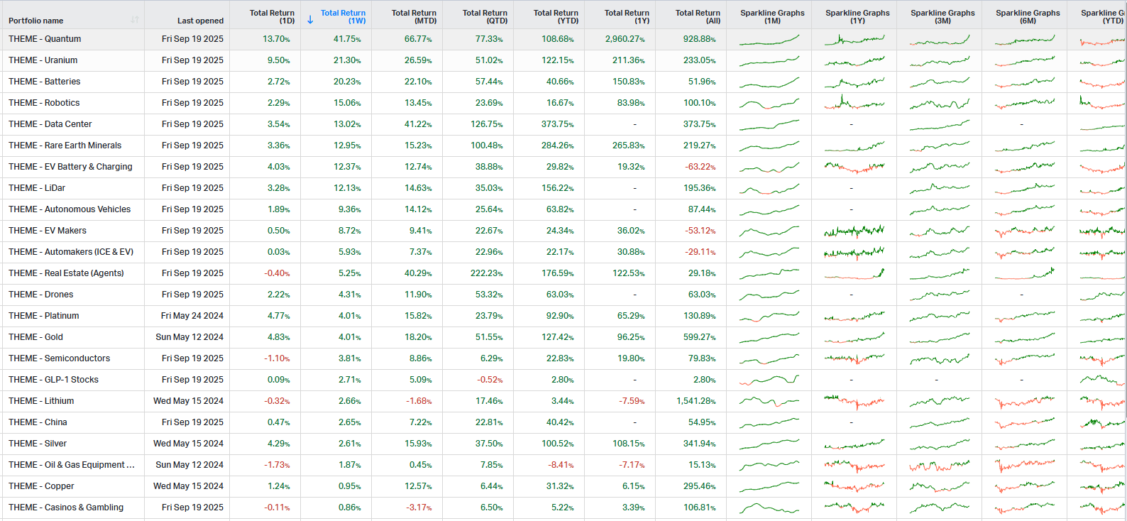 Lots of speculative themes at the moment. Strong breakouts on Friday in many areas. Always a note of caution on Rebalancing and Option Expiry dates on stock moves, lets see what holds up next week. Story stocks are currently where it is at. The more speculative the better.